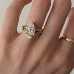The Sloane Pear Solitaire Engagement Ring, close up on hand